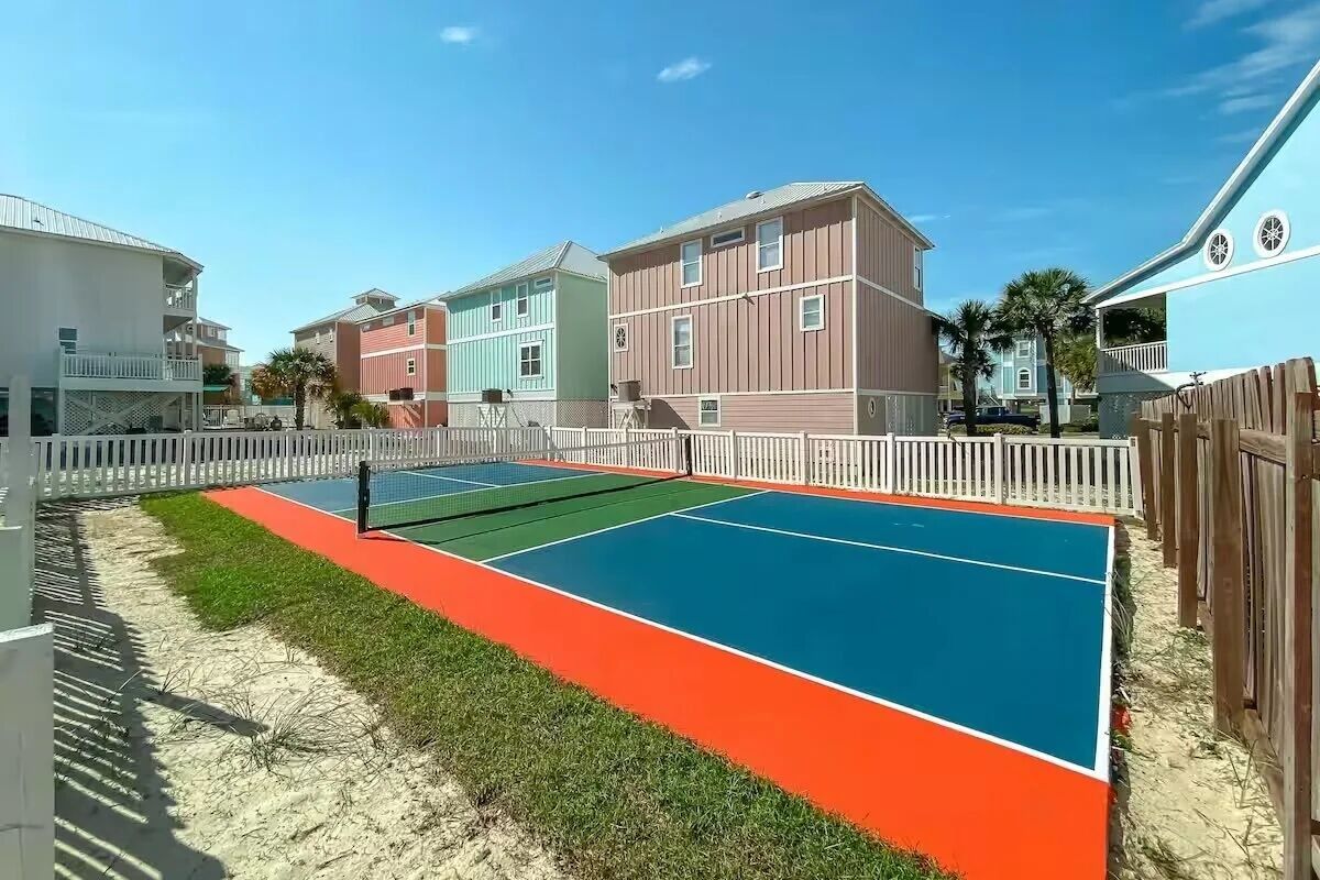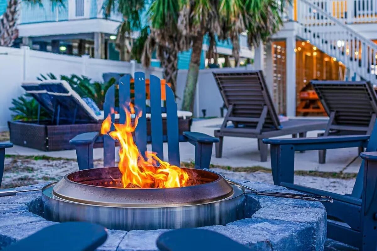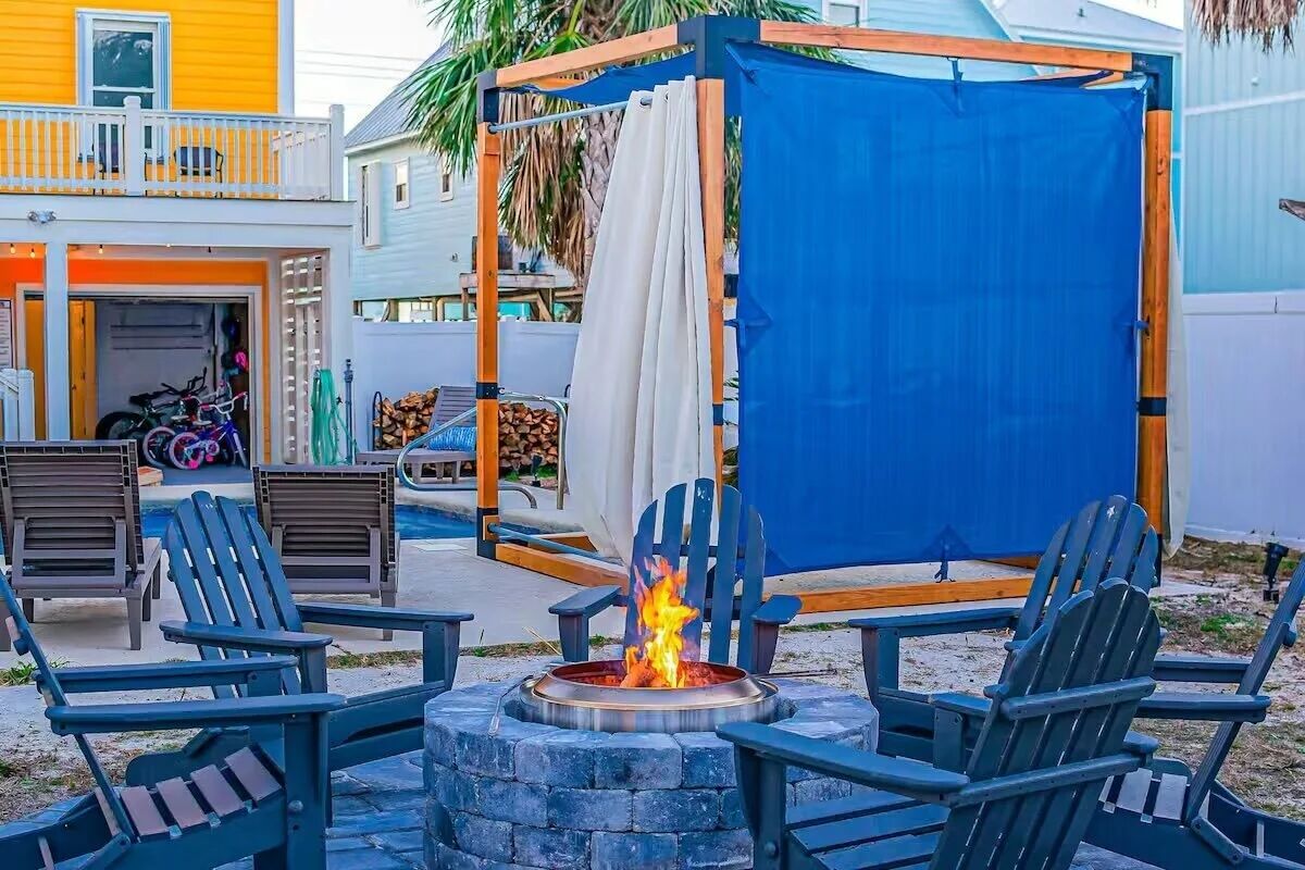Relax in the heated private pool or sip sunset cocktails at our vibrant tiki bar as you listen to your favorite music through the blue tooth sound system. As Gulf Shores' only property with a private pickleball court, you can enjoy leisurely fun right outside your door. Gather around the fire pit on cooler evenings for a cozy atmosphere perfect for s'mores and story-sharing or explore the scenic beauty of Gulf Shores using the complimentary bicycles.