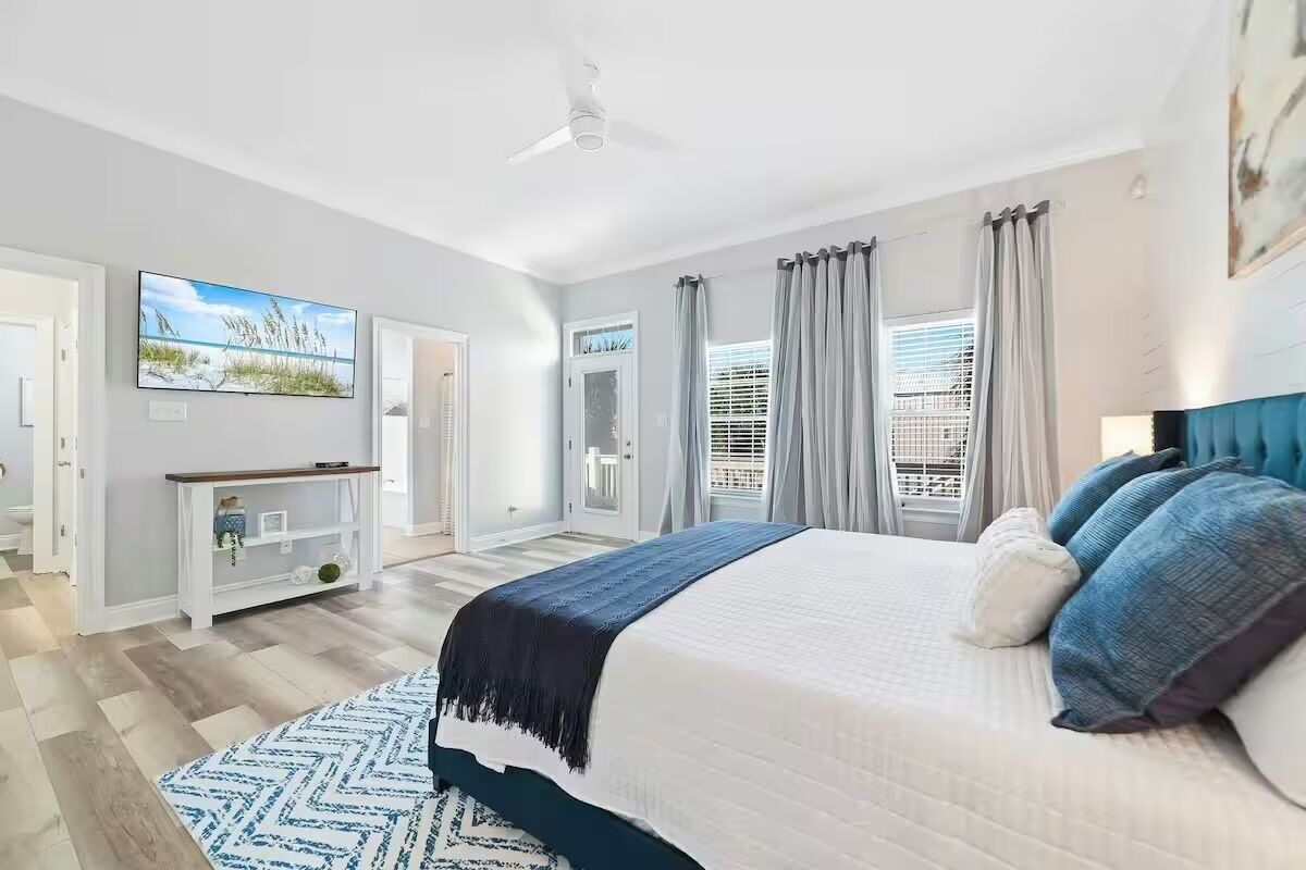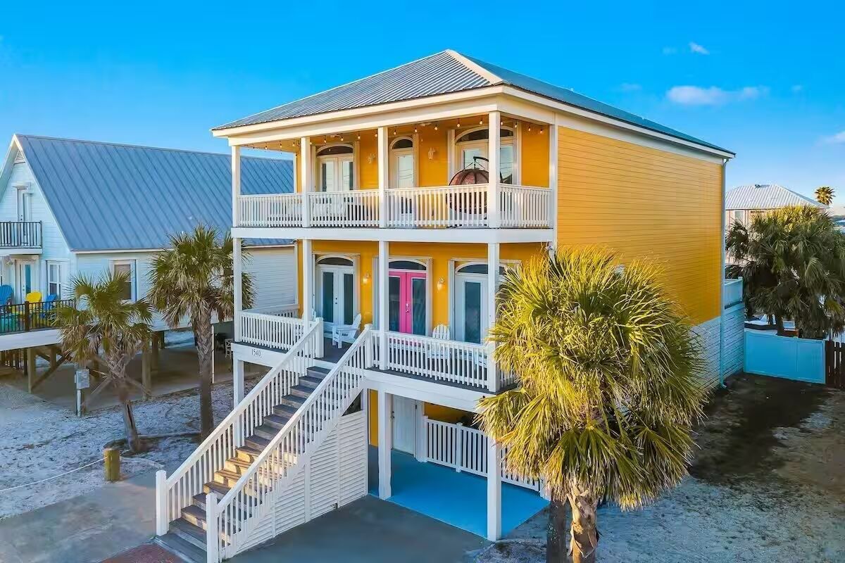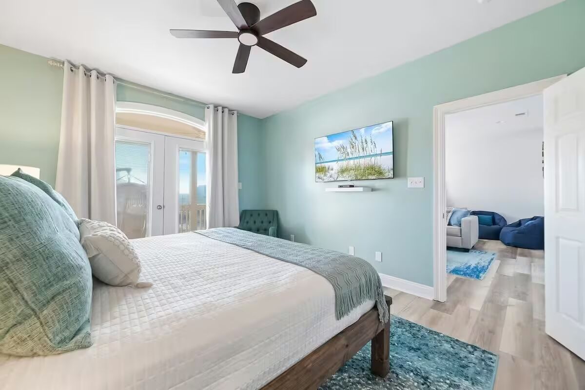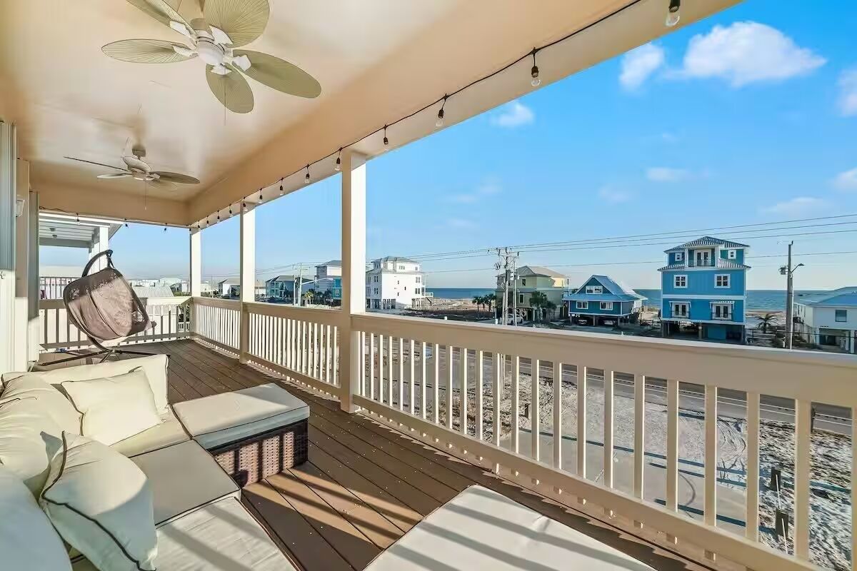 - Primary Suite (2nd floor): King bed, ensuite bath, access to the upper deck with stunning Gulf views.