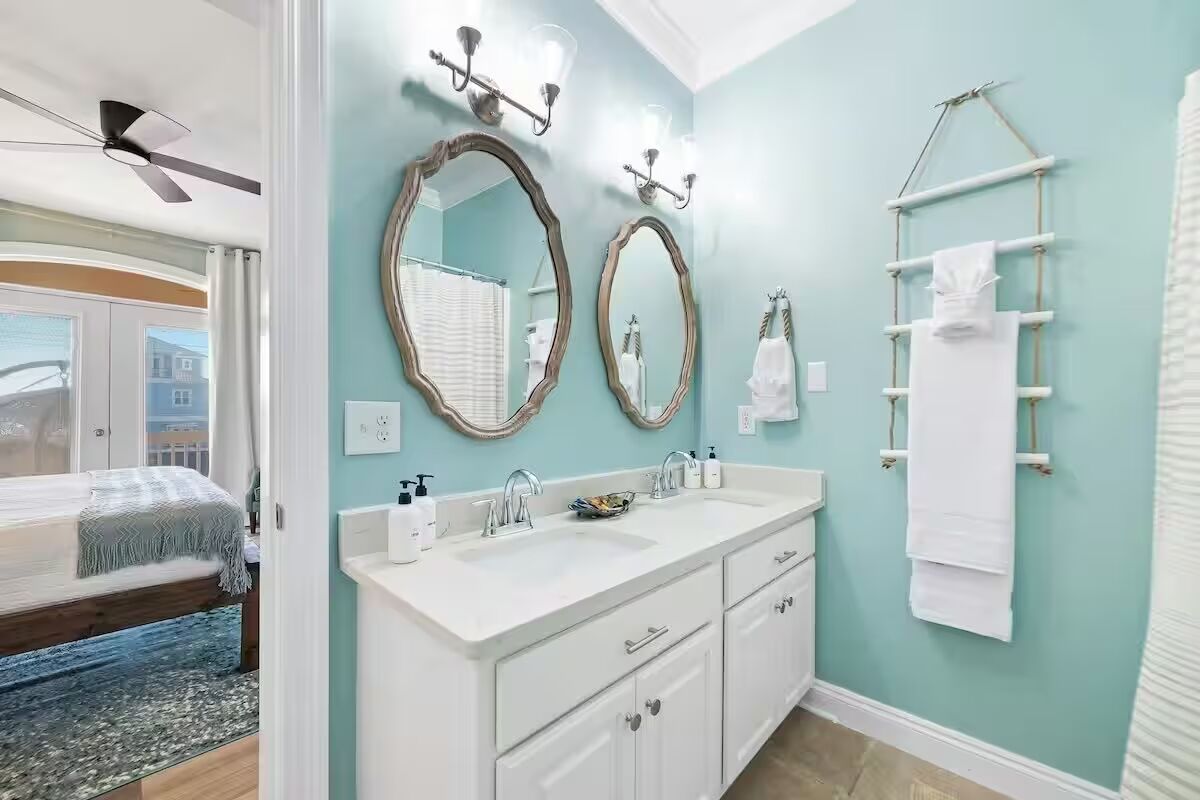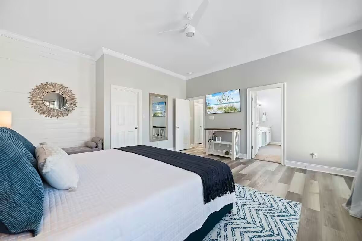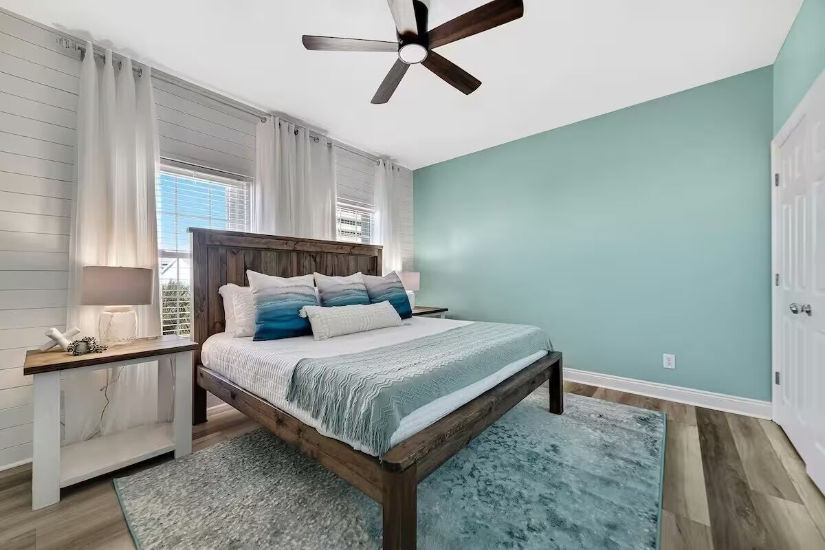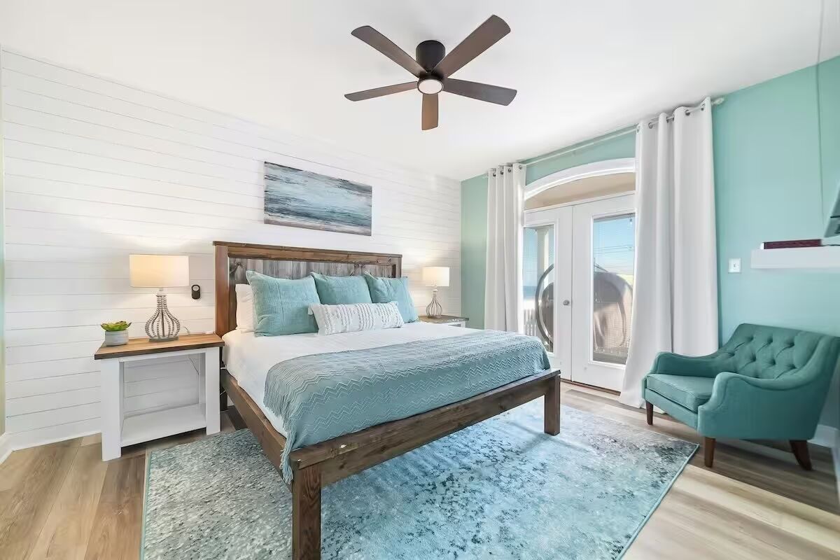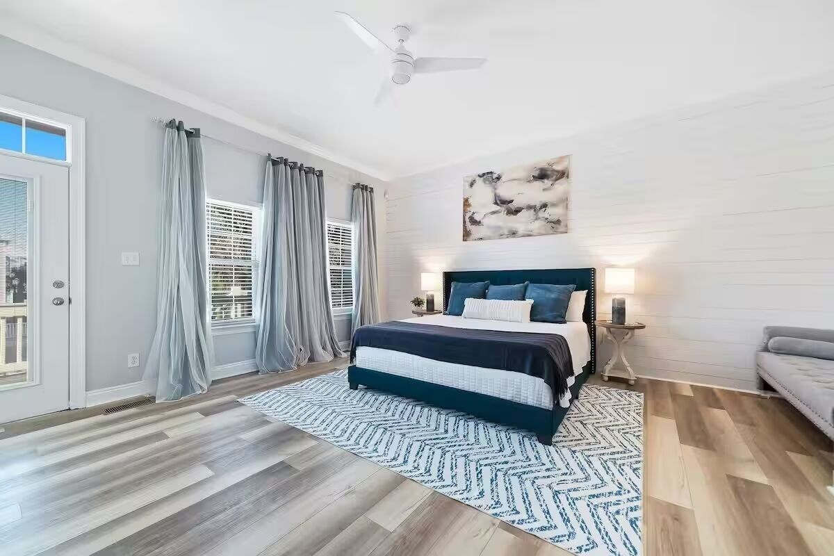 - Primary Suite (2nd floor): King bed, ensuite bath, access to the upper deck with stunning Gulf views.