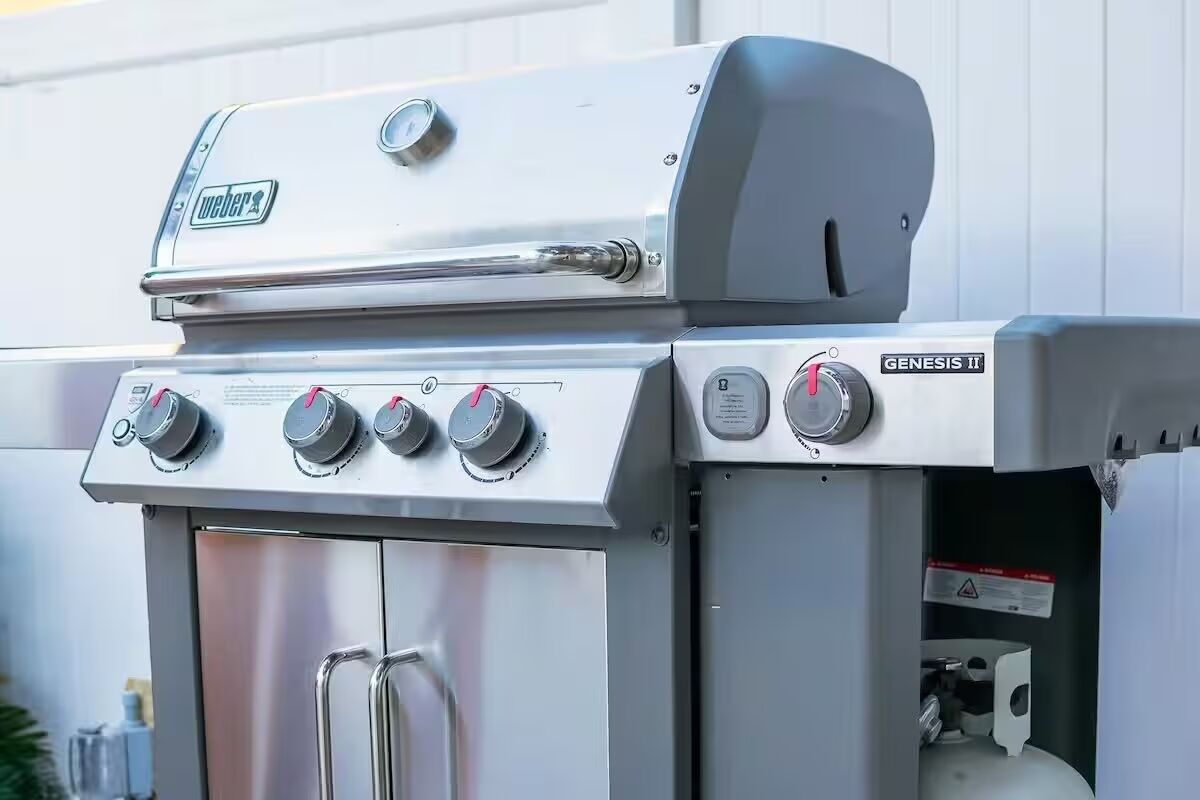 Grill & Fire Pit: Weber Genesis II propane grill and fire pit with provided firewood.