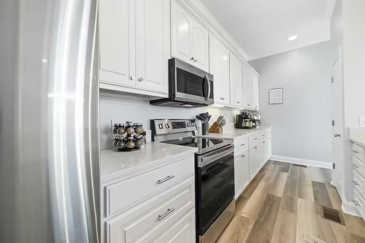 Amenities: Brand-new appliances, cookware, utensils, baking essentials, spices, and Ninja Foodi (9-in-1 cooker and air fryer).