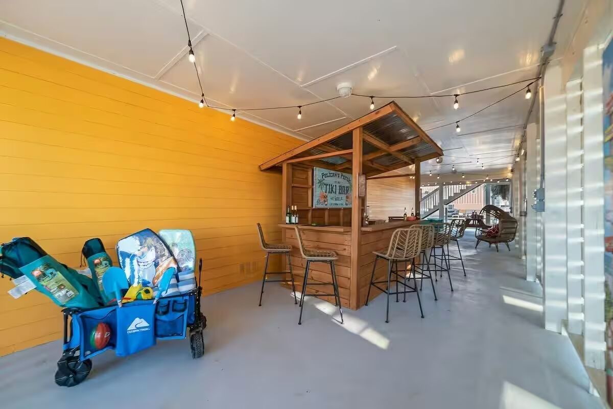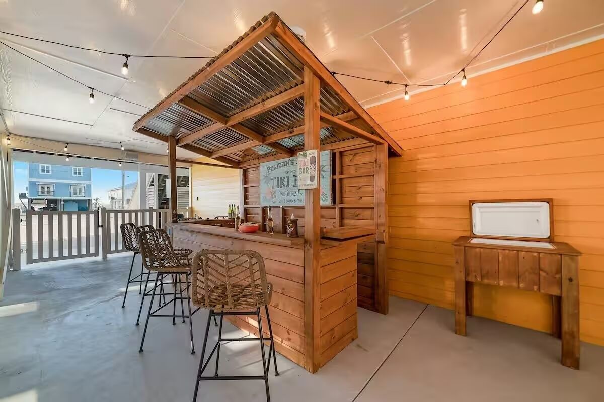 Tiki Bar: Custom-built with seating, lighting, and a sound system.